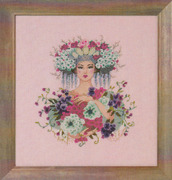 | Cross stitch pattern from Mirabilla featuring a lovely lady covered in flowers. Model stitched on 32ct. "touch of pink" linen by Wichelt using DMC threads, Kreinik braids and Mill Hill beads. Stitch count is 141 x 156. Stitched area is 8.81 x 9.75. | |